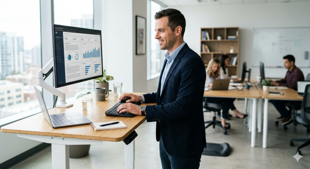 If you find your concentration slipping away by the early afternoon, the solution might not be another cup of coffee; it might be a change in posture. Linking your physical stance to your mental state is a powerful productivity strategy. This guide explores the biological mechanisms behind standing desk benefits, detailing how simple positional shifts can dramatically improve your daily focus and cognitive stamina.