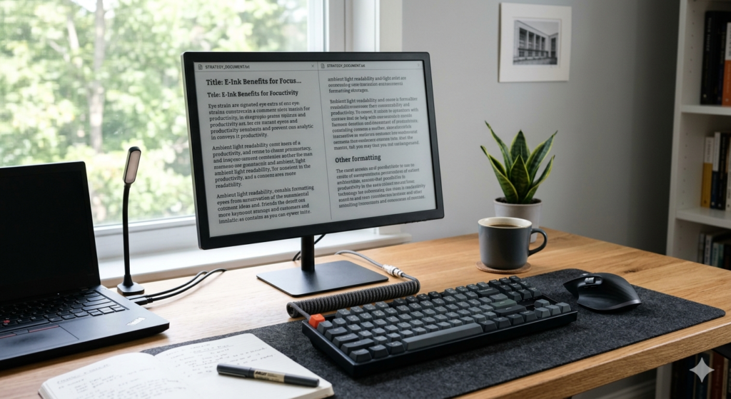 For writers, researchers, and programmers, this technology is an invaluable tool for single-tasking. Many professionals utilize a dedicated Dasung or Boox E-ink Tablet as a secondary display used exclusively for drafting documents, allowing them to escape the fatiguing glare of their primary color monitor.